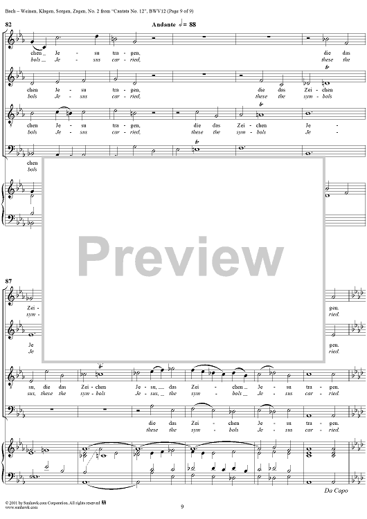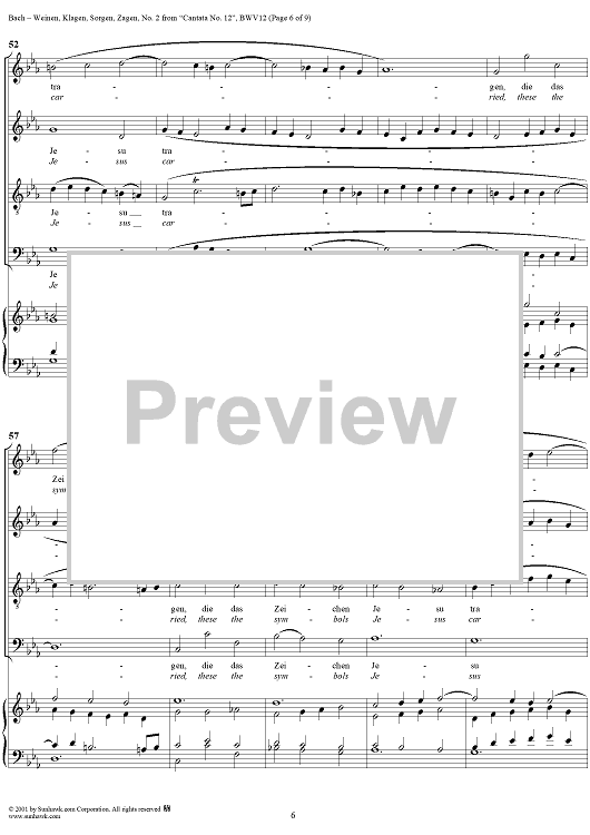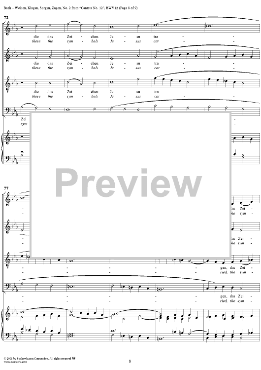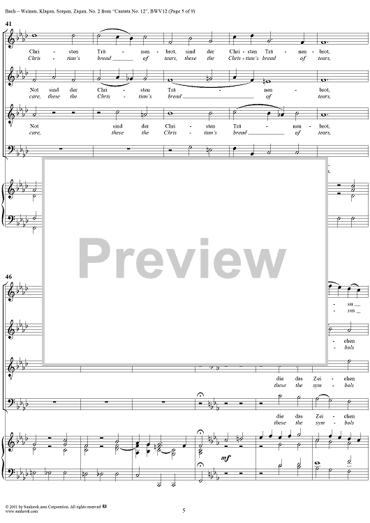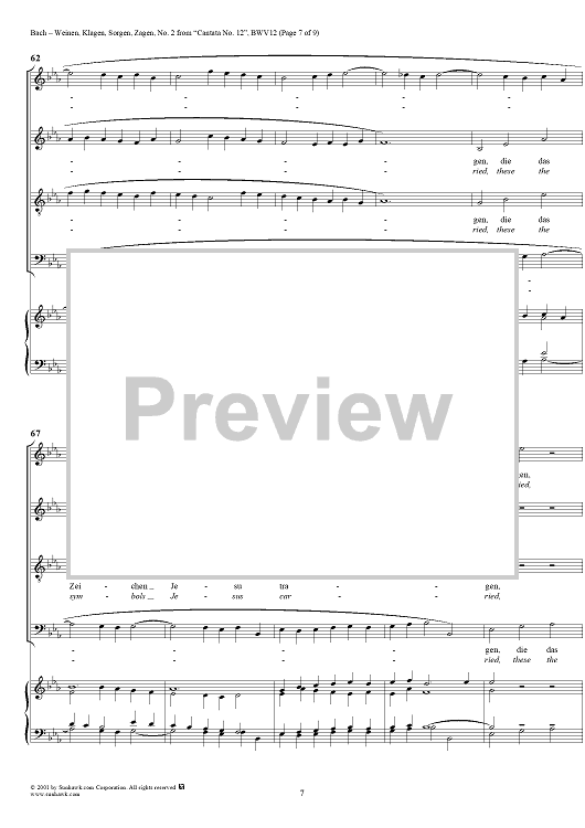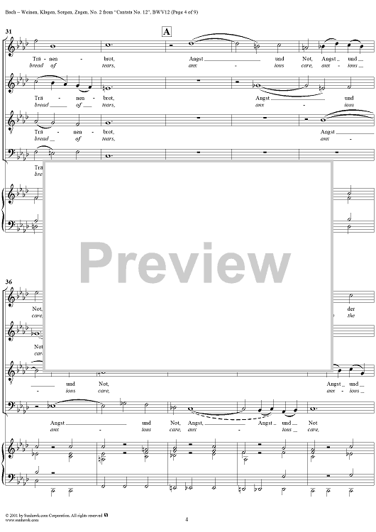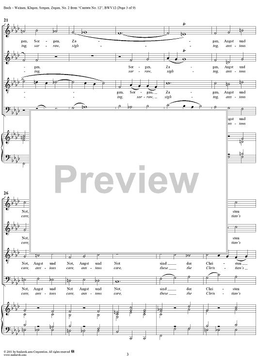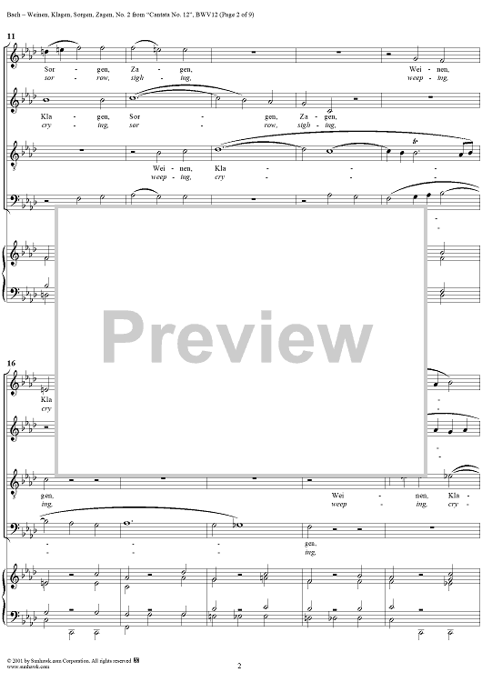 Digital Sheet Music for "Weinen, Klagen, Sorgen, Zagen" (chorus), No. 2 from Cantata No. 12 by Johann Sebastian Bach scored for Four-part Mixed Chorus/Piano; id:276633