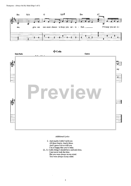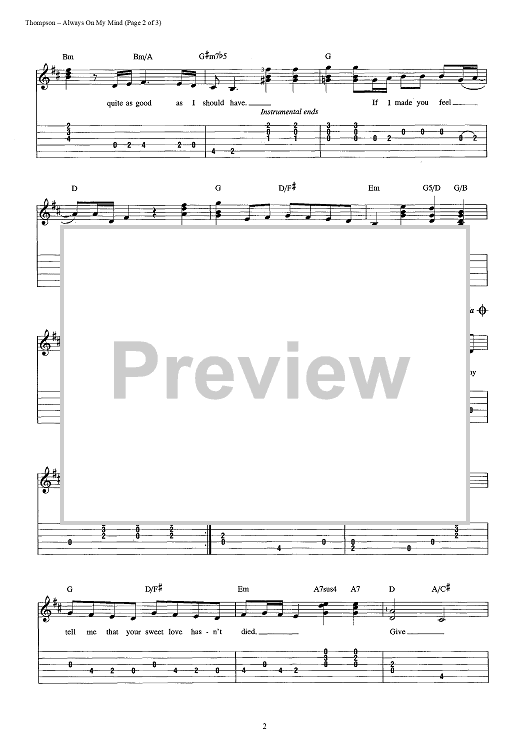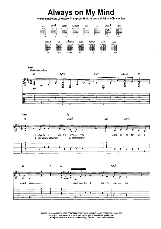Digital Sheet Music for Always On My Mind by Wayne Thompson, Mark James, Johnny Christopher, Willie Nelson scored for Easy Guitar Tab; id:392987