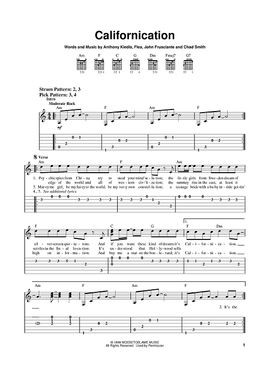Digital Sheet Music for Californication by Flea, John Frusciante, Anthony Kiedis, Red Hot Chili Peppers scored for Easy Guitar Tab; id:374609