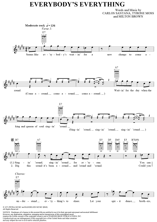 Digital Sheet Music for Everybody's Everything by Carlos Santana, Milton Brown, Tyrone Moss scored for Lead Sheet; id:283248
