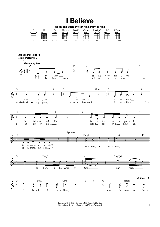 Digital Sheet Music for I Believe by Fran King, Wes King scored for Easy Guitar; id:398236
