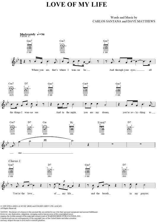 Digital Sheet Music for Love of My Life by Carlos Santana, Dave Matthews scored for Lead Sheet; id:283244