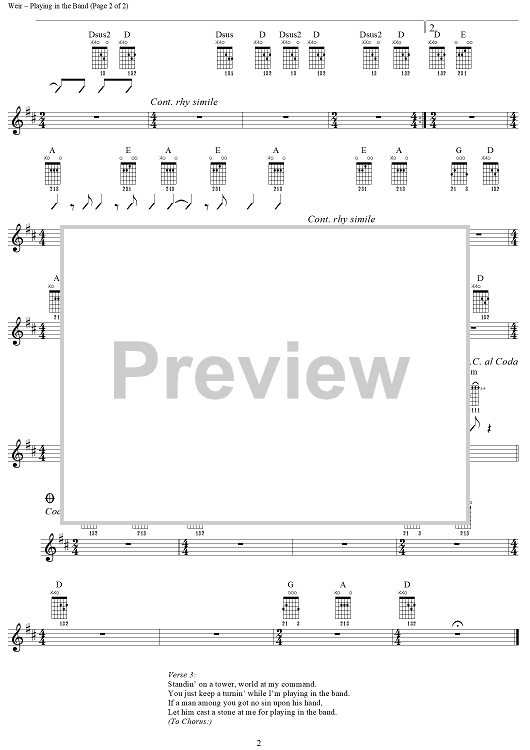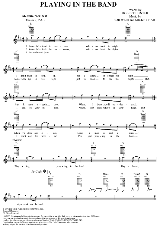 Digital Sheet Music for Playing in the Band by Robert Hunter, Bob Weir, Mickey Hart, Grateful Dead scored for Easy Guitar/Vocal; id:294126