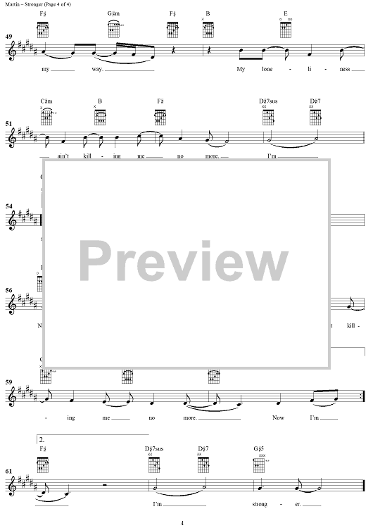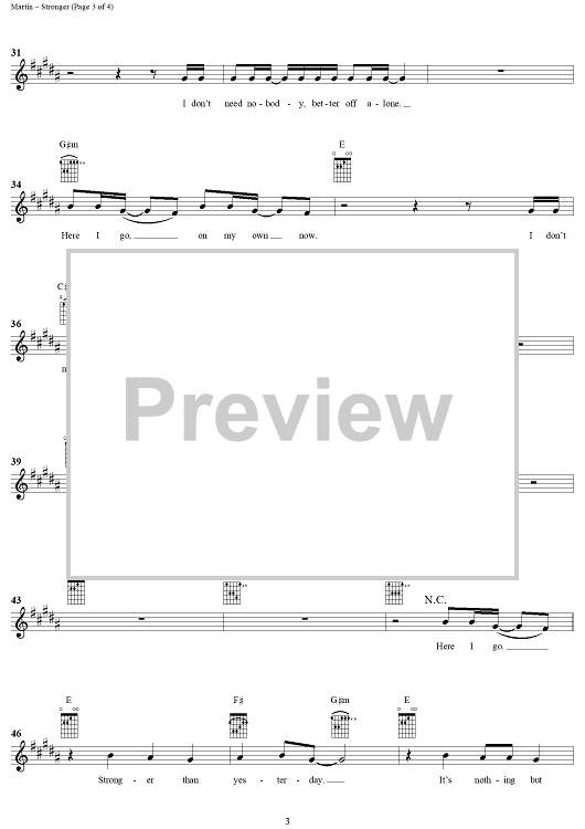Digital Sheet Music for Stronger by Max Martin, Rami Yacoub, Britney Spears scored for Easy Guitar/Vocal; id:285758