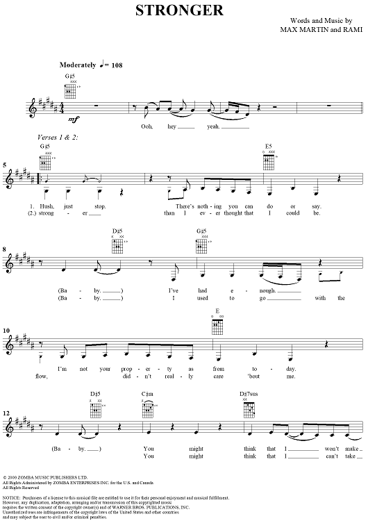 "Stronger" Sheet Music by Britney Spears