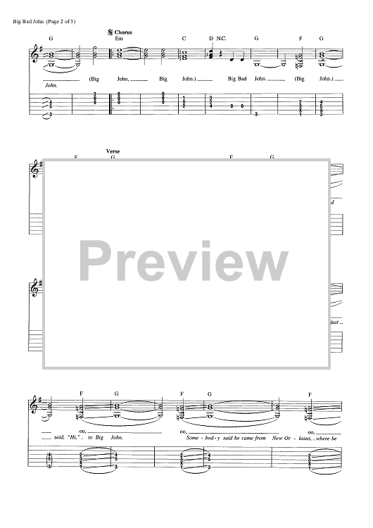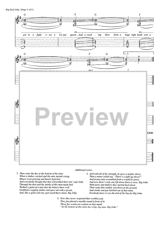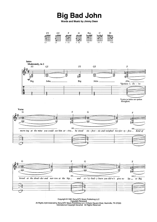 Digital Sheet Music for Big Bad John by Jimmy Dean scored for Easy Guitar Tab/Vocal/Chords; id:456712