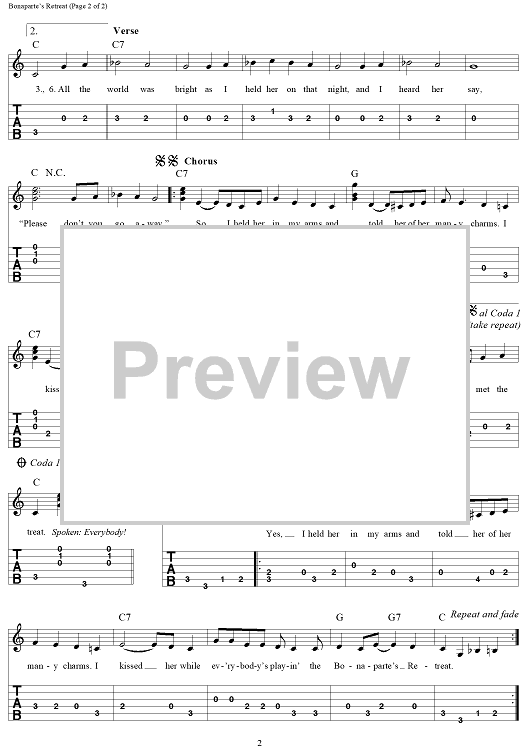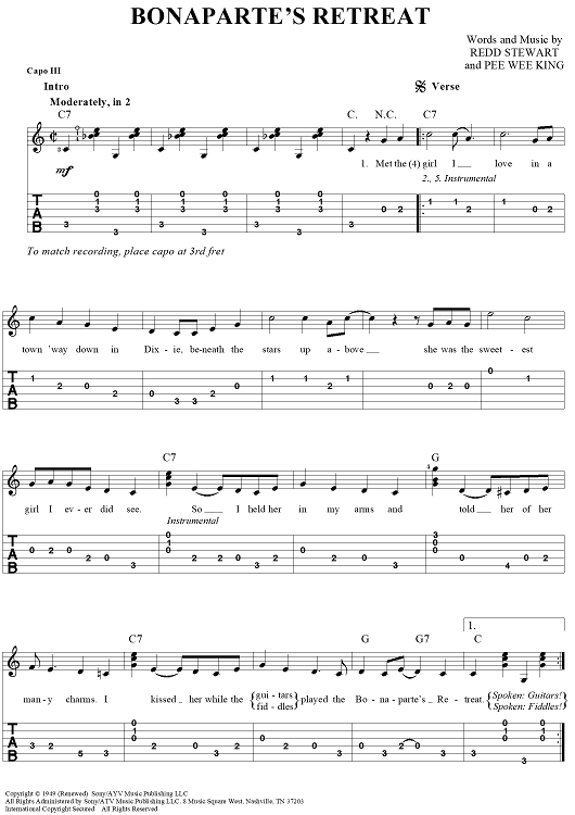 Digital Sheet Music for Bonaparte's Retreat by Redd Stewart, Pee Wee King, Glen Campbell scored for Easy Guitar Tab/Vocal/Chords; id:456713