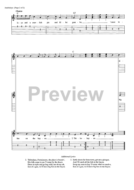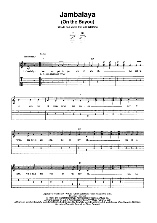 Digital Sheet Music for Jambalaya (On the Bayou) by Hank Williams scored for Easy Guitar Tab/Vocal/Chords; id:456749