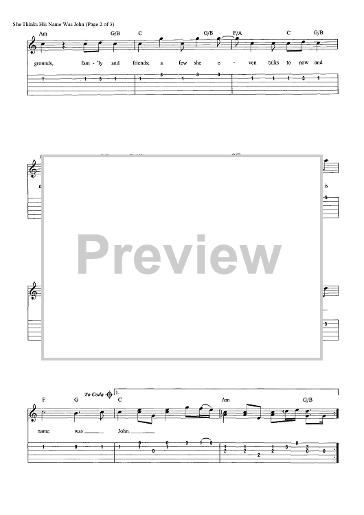 Digital Sheet Music for She Thinks His Name Was John by Reba McEntire, Sandy Knox, Steve Rosen scored for Easy Guitar Tab/Vocal/Chords; id:456816