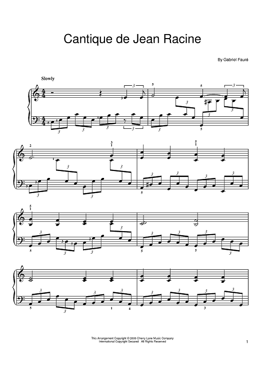 Digital Sheet Music for Cantique De Jean Racine by Gabriel Fauré scored for Easy Piano; id:388655
