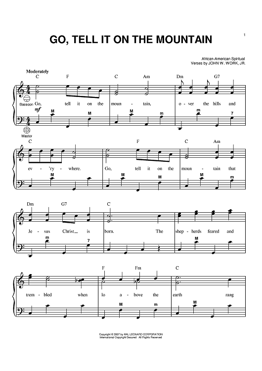 "Go, Tell It On The Mountain" Sheet Music by Jr., John W. Work
