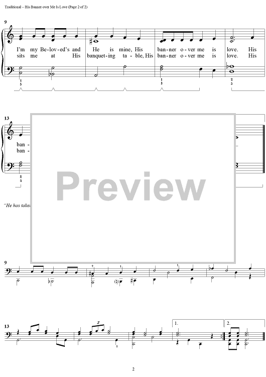 "His Banner Over Me Is Love" Sheet Music by Traditional