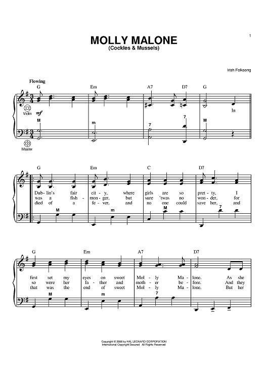 "Molly Malone (Cockles & Mussels)" Sheet Music by