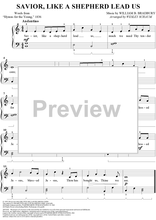 Digital Sheet Music for Savior, Like a Shepherd Lead Us by , Wesley Schaum, Traditional Spiritual, William B. Bradbury scored for Easy Piano/Vocal; id:316330