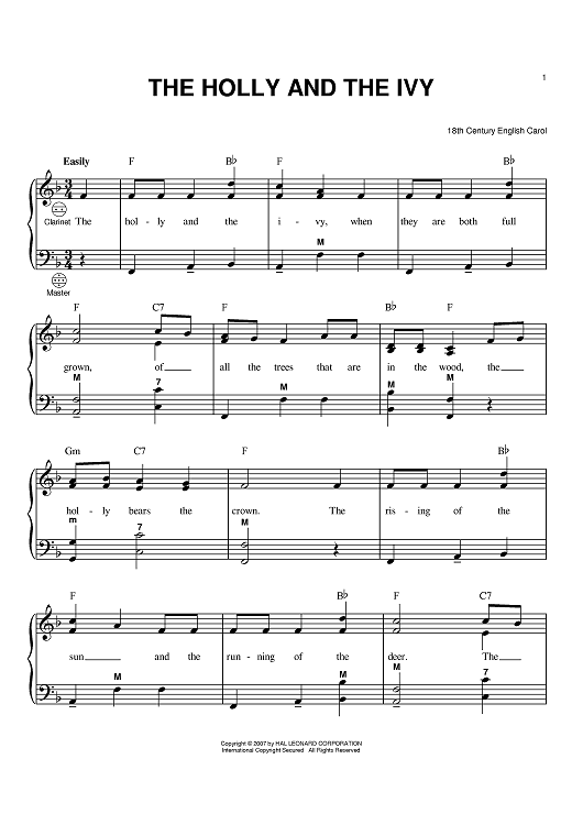 Digital Sheet Music for The Holly And The Ivy by scored for Accordion; id:397933