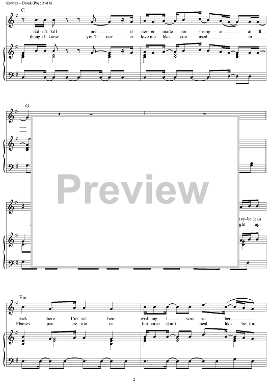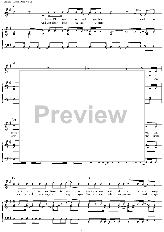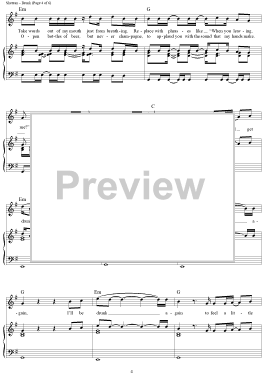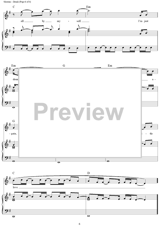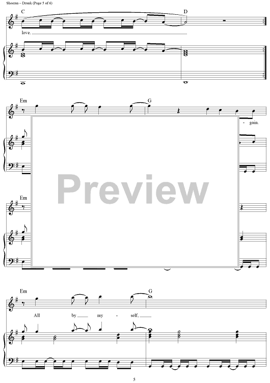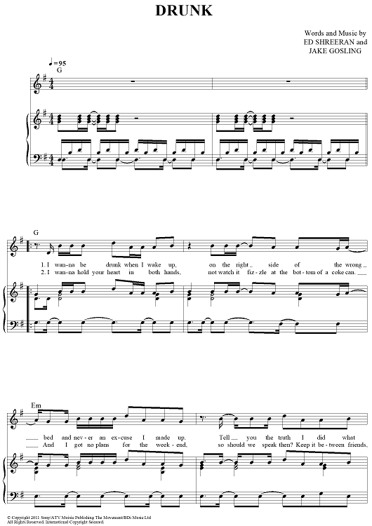 Digital Sheet Music for Drunk by Ed Sheeran, Jake Gosling scored for Piano/Vocal/Chords; id:429475