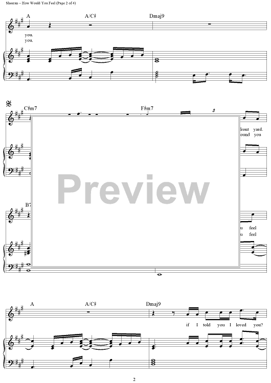 Digital Sheet Music for How Would You Feel (Paean) by Ed Sheeran scored for Piano/Vocal/Chords; id:468971