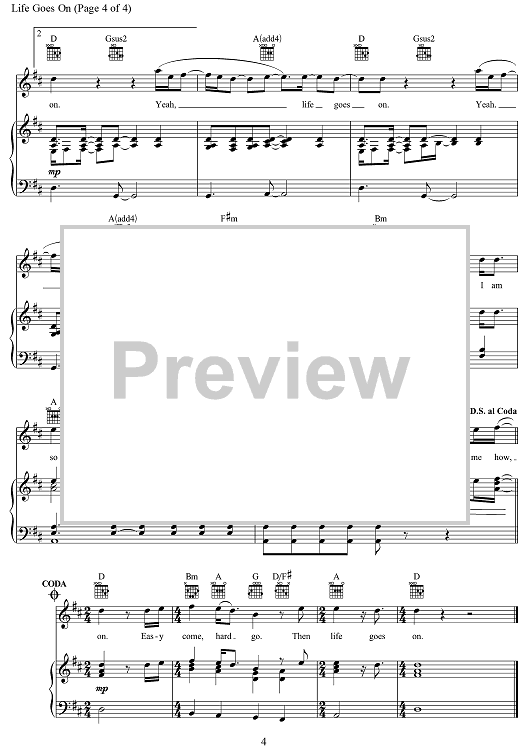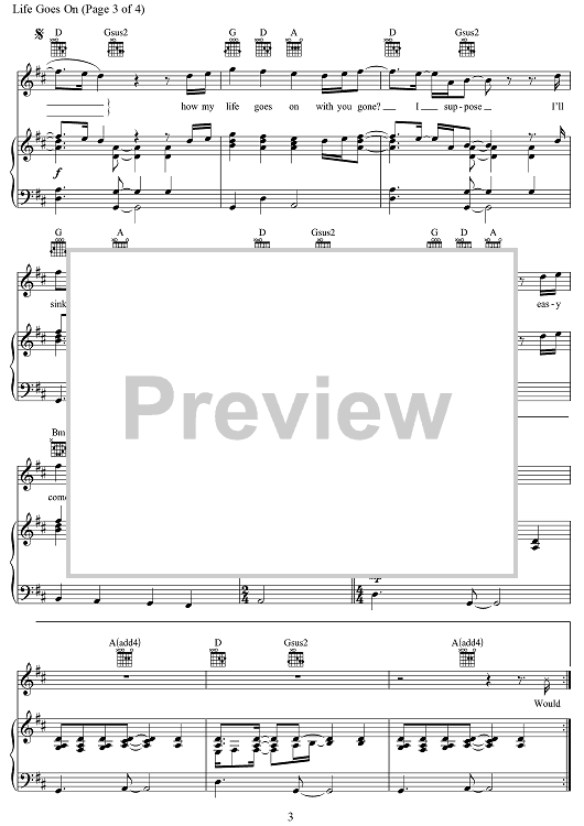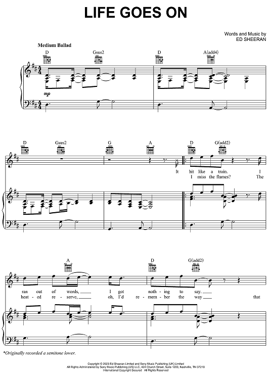 Digital Sheet Music for Life Goes On by Ed Sheeran scored for Piano/Vocal/Chords; id:500300