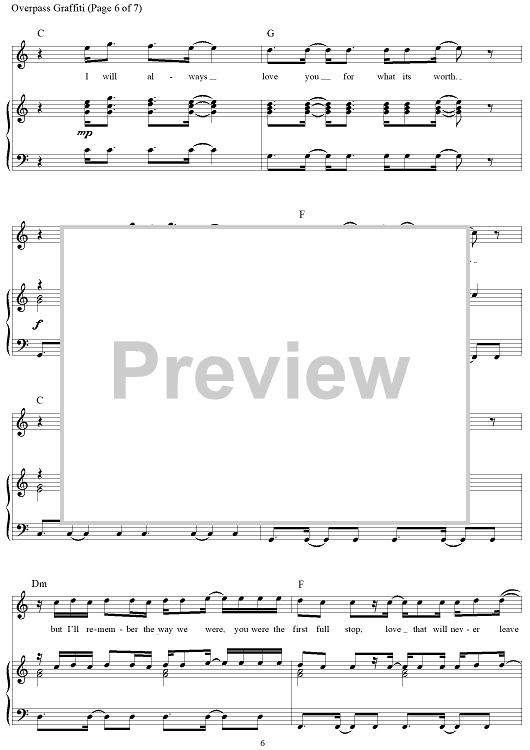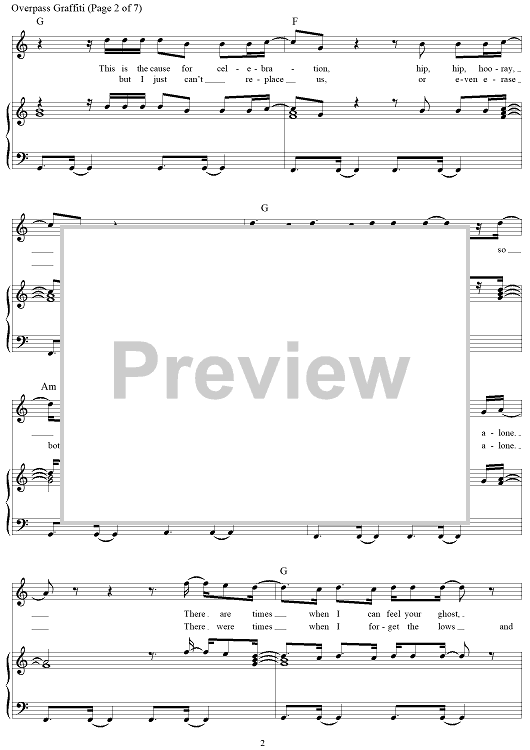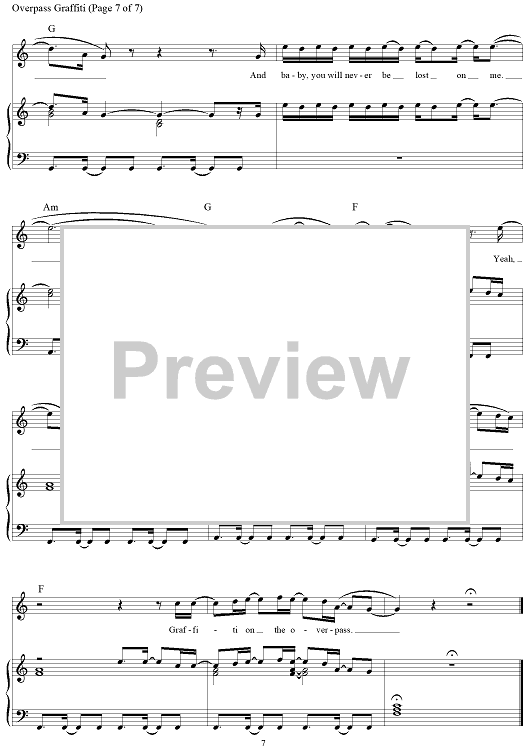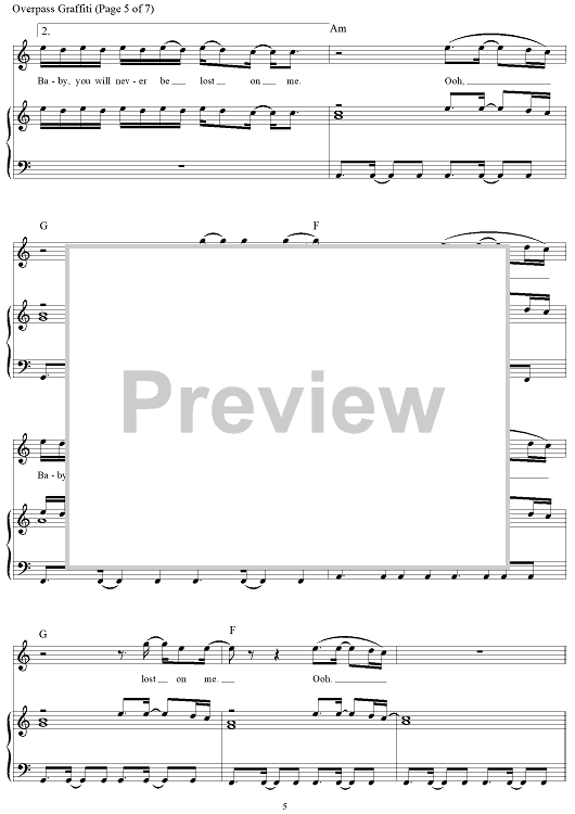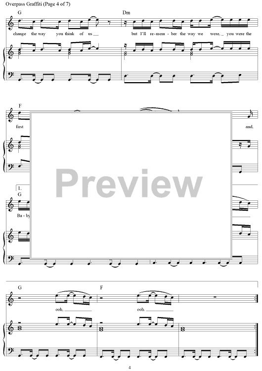 Digital Sheet Music for Overpass Graffiti by Ed Sheeran, John McDaid, Fred Gibson scored for Piano/Vocal/Chords; id:469938