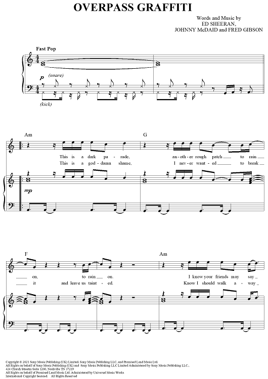 "Overpass Graffiti" Sheet Music by Ed Sheeran