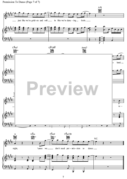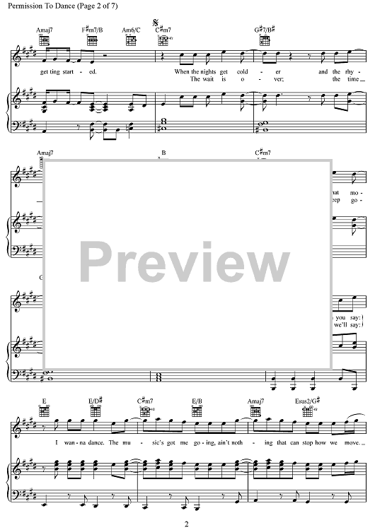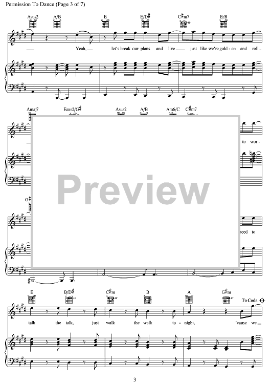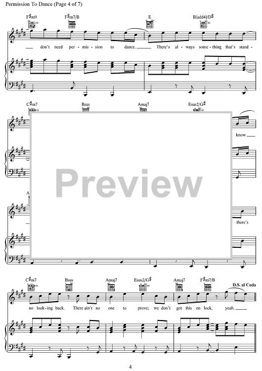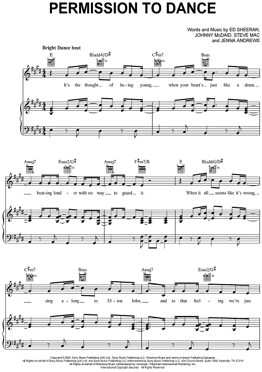 Digital Sheet Music for Permission To Dance by Steve Mac, Ed Sheeran, John McDaid, BTS, Jenna Andrews scored for Piano/Vocal/Chords; id:469480