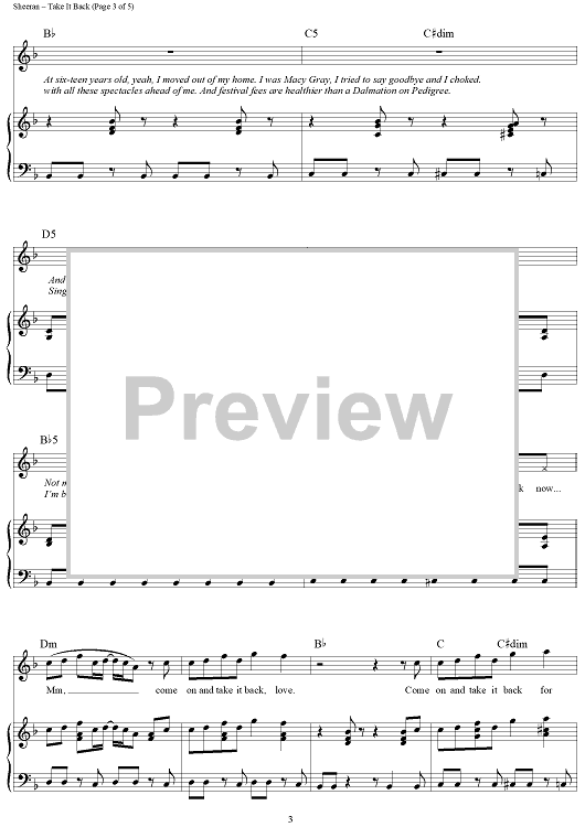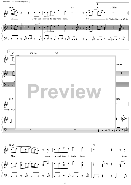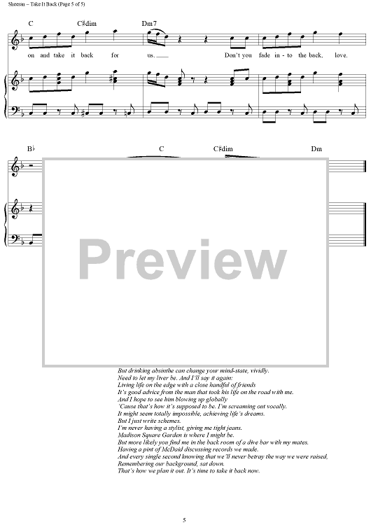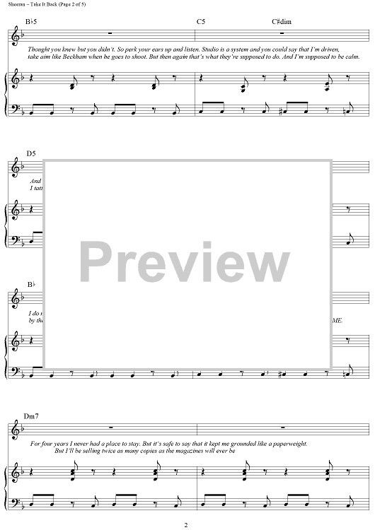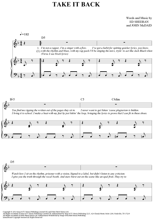 Digital Sheet Music for Take It Back by Ed Sheeran, John McDaid scored for Piano/Vocal/Chords; id:445458