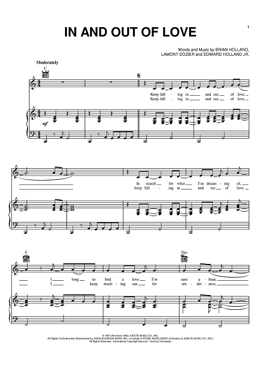 Digital Sheet Music for In And Out Of Love by Diana Ross, Lamont Dozier, Brian Holland, Eddie Holland, The Supremes scored for Piano/Vocal/Chords; id:375270
