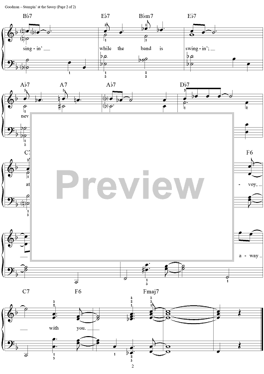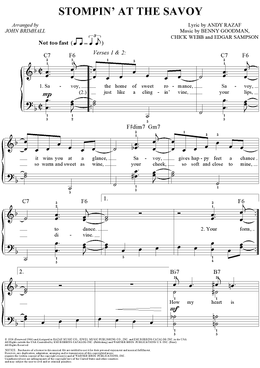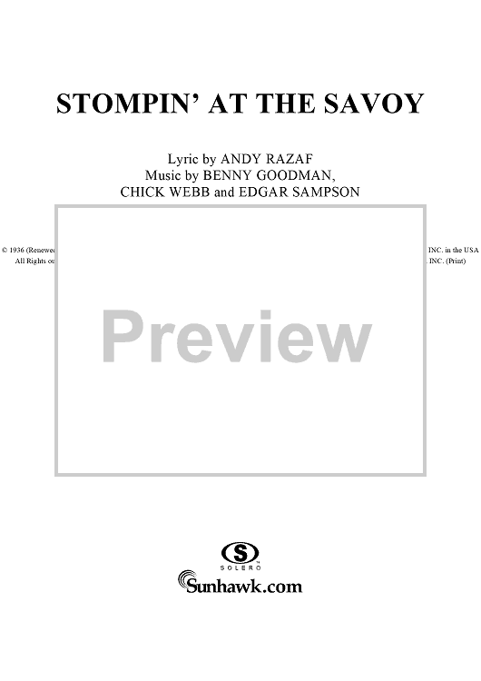 Digital Sheet Music for Stompin' at the Savoy by Chick Webb, Benny Goodman, Andy Razaf, Edgar Sampson, John Brimhall scored for Big Note Piano; id:269400