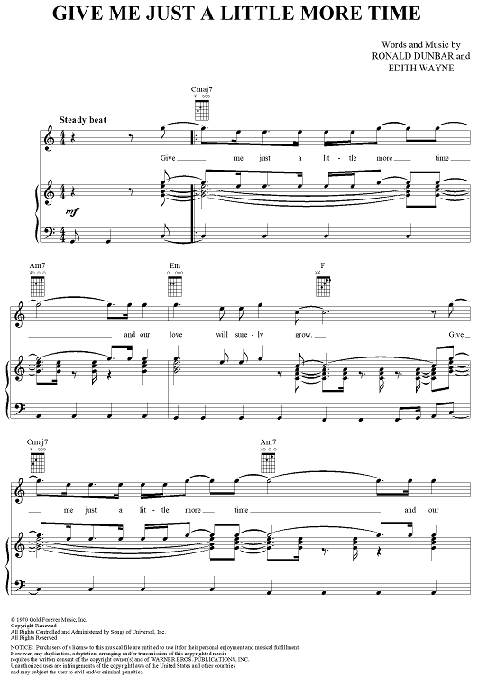 Digital Sheet Music for Give Me Just a Little More Time by Ronald Dunbar, Edith Wayne, Chairman of the Board scored for Piano/Vocal/Chords; id:286541