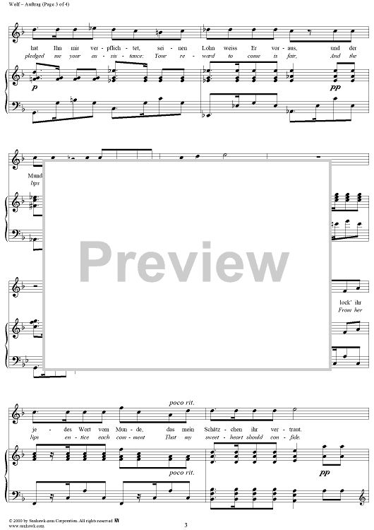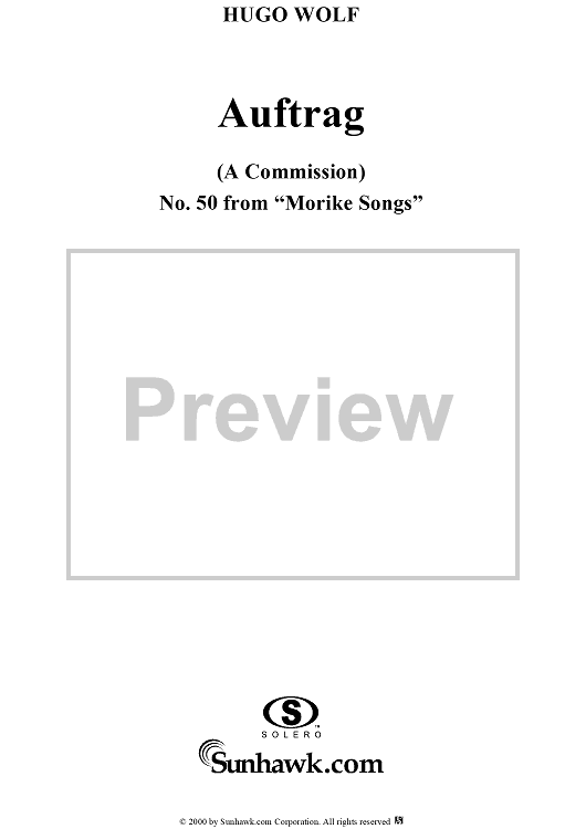 Digital Sheet Music for Auftrag–Couplet, No. 50 from "Mörike Lieder" by Hugo Wolf, Eduard Mörike scored for Voice/Piano; id:263392
