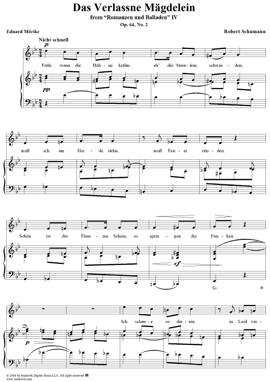 Digital Sheet Music for Das verlassne Mägdelein, Op. 64, No. 2 by Robert Schumann, Eduard Mörike scored for Voice/Piano; id:315858