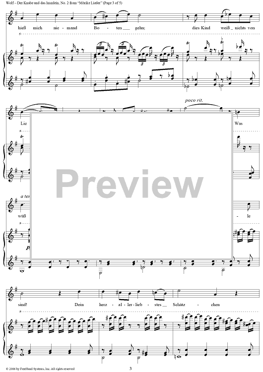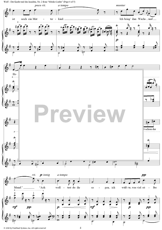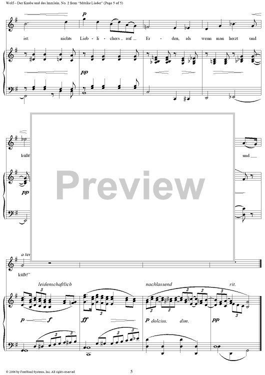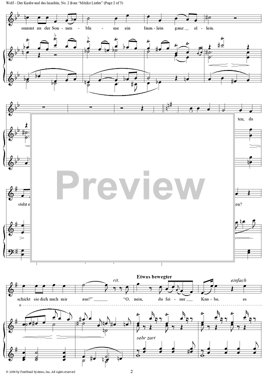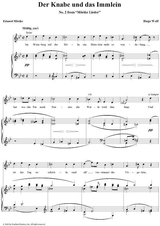 Digital Sheet Music for Der Knabe und das Immlein, No. 2 from "Mörike Lieder" by Hugo Wolf, Eduard Mörike scored for Voice/Piano; id:318974