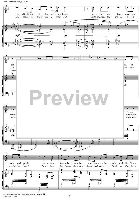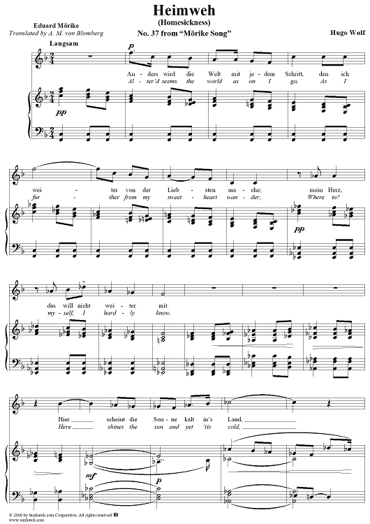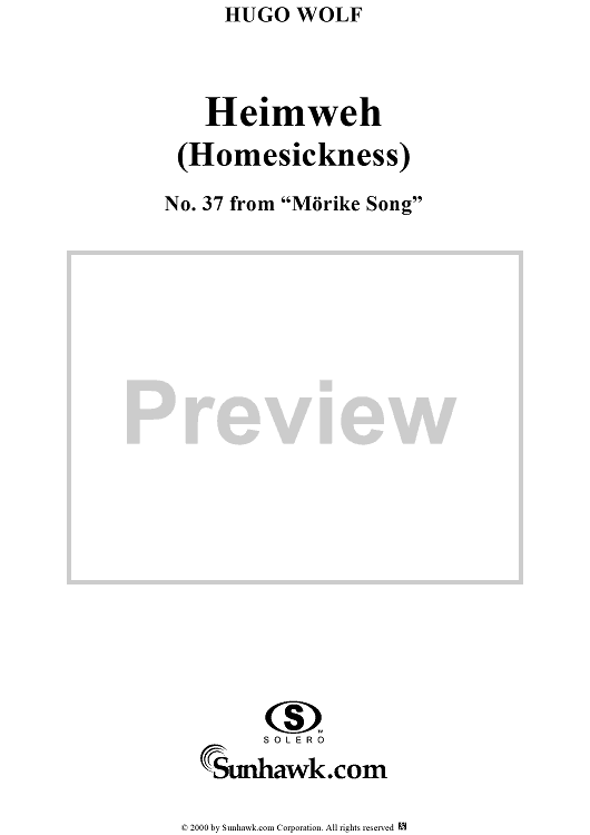 Digital Sheet Music for Heimweh, No. 37 from "Mörike Lieder" by Hugo Wolf, Eduard Mörike scored for Voice/Piano; id:263417