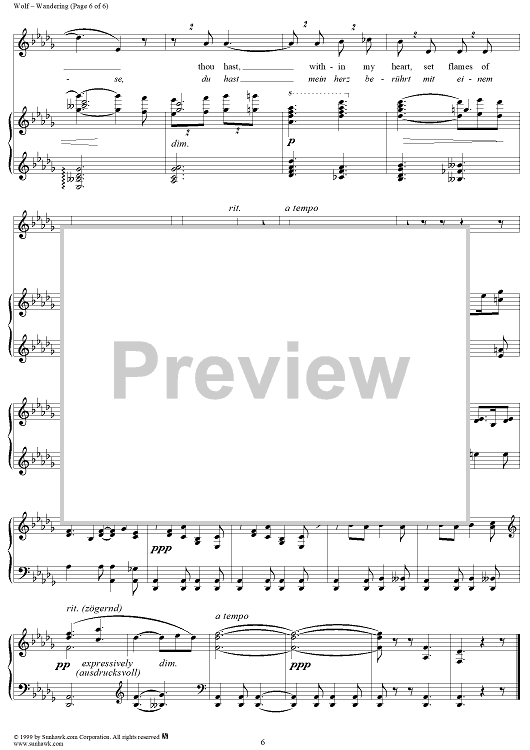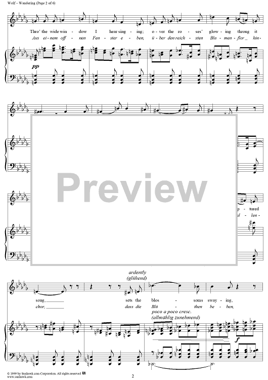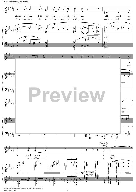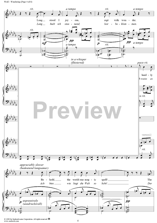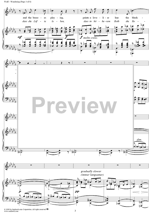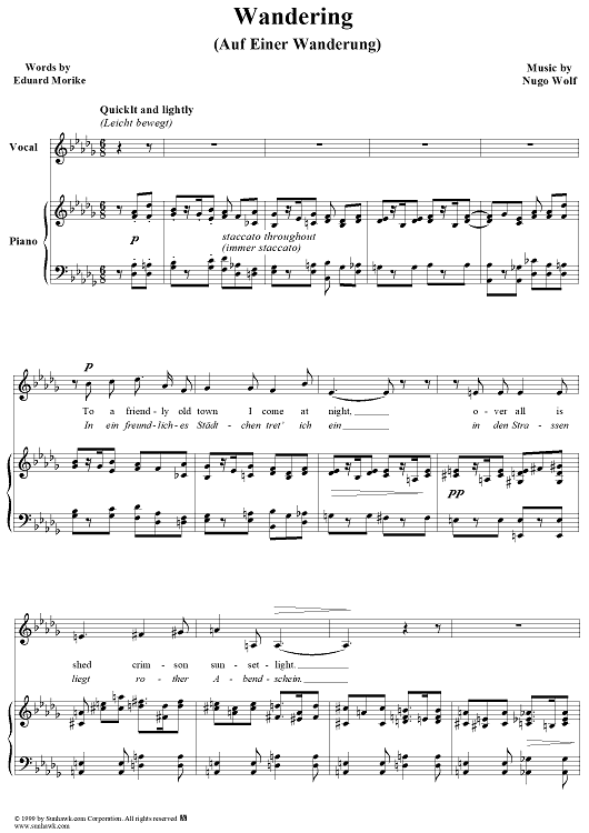Digital Sheet Music for Mörike Lieder, No. 15 - Auf einer Wanderung by Hugo Wolf, Eduard Mörike scored for Voice/Piano; id:263586