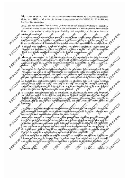 "Metamorphoses" Sheet Music by Torbjoern Lundquist