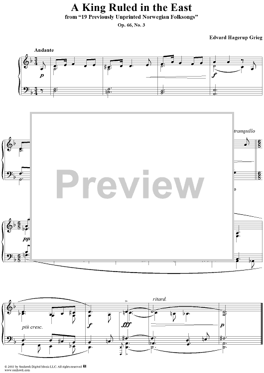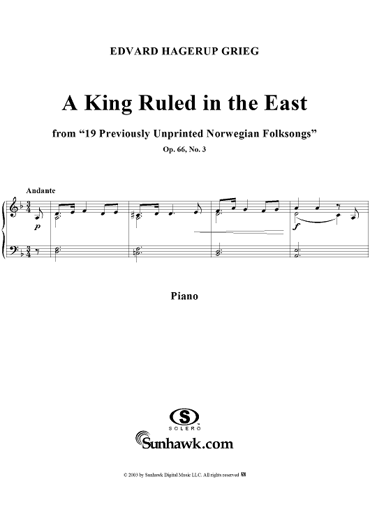 Digital Sheet Music for A King Ruled in the East by Edvard Grieg scored for Piano Solo; id:268099