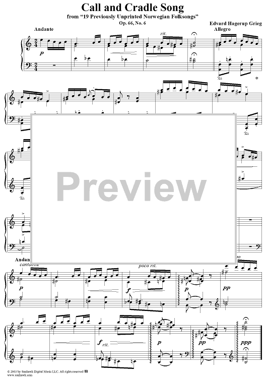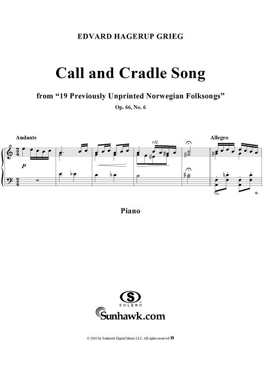 Digital Sheet Music for Call and Cradle Song by Edvard Grieg scored for Piano Solo; id:268089