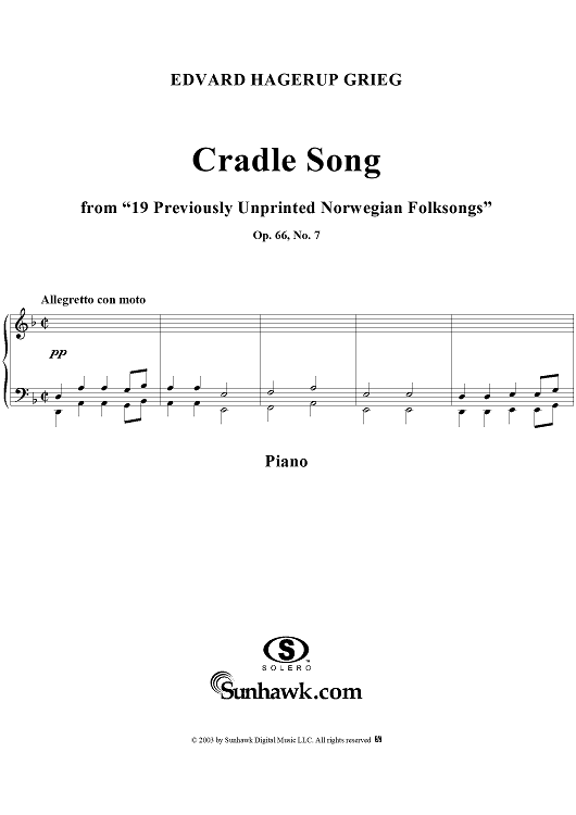Digital Sheet Music for Cradle Song by Edvard Grieg scored for Piano Solo; id:268094