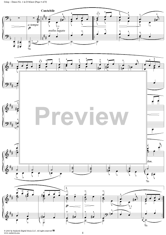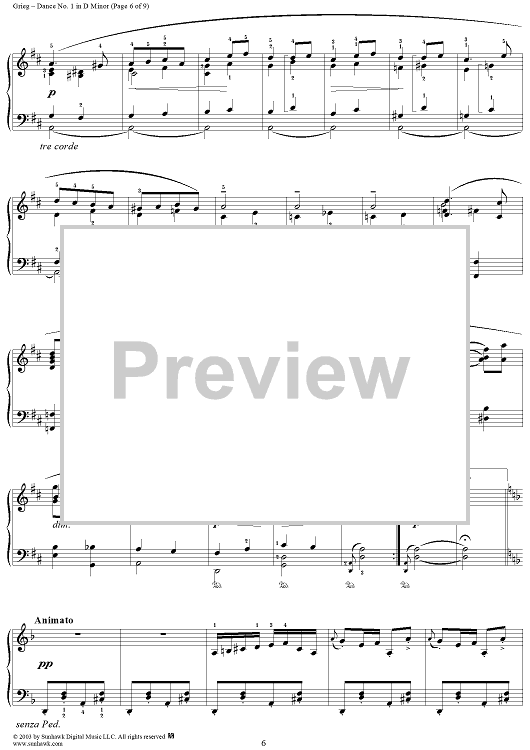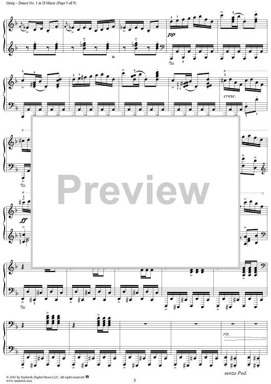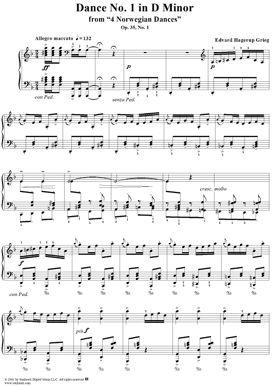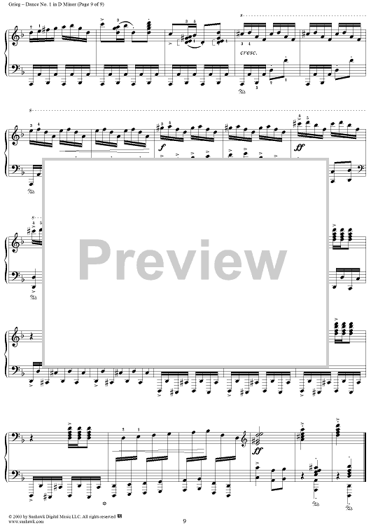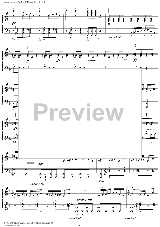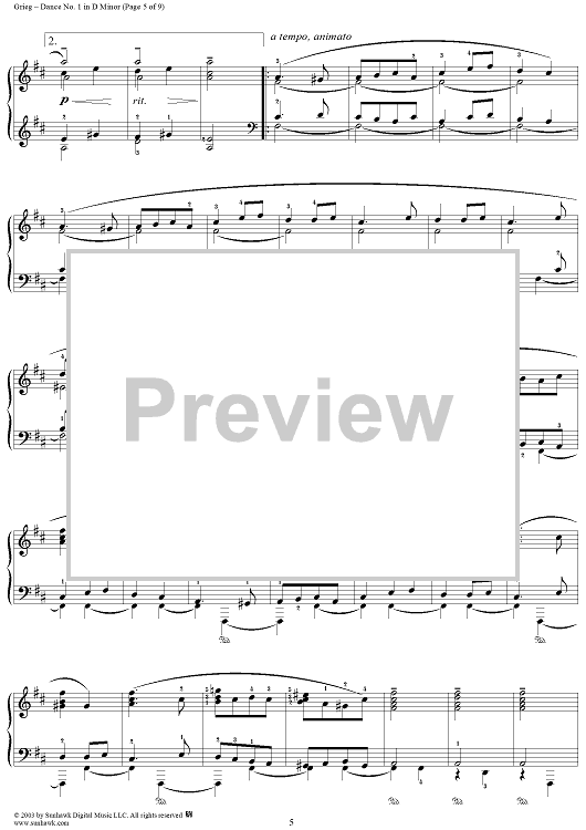 Digital Sheet Music for Dance No. 1 in D Minor by Edvard Grieg scored for Piano Solo; id:292659