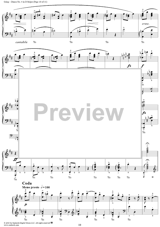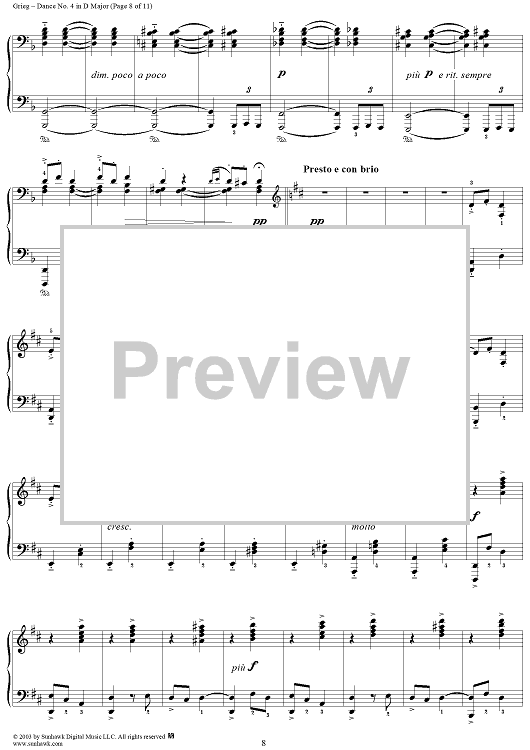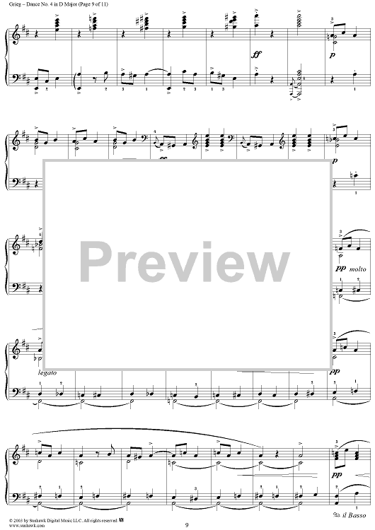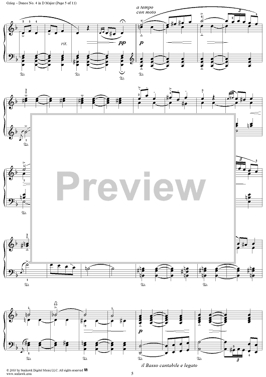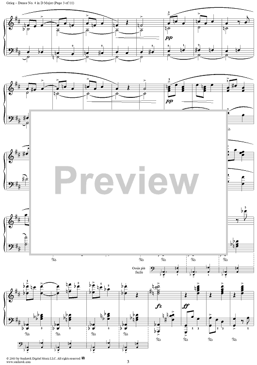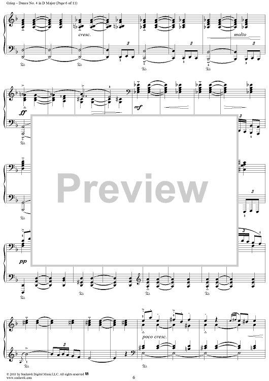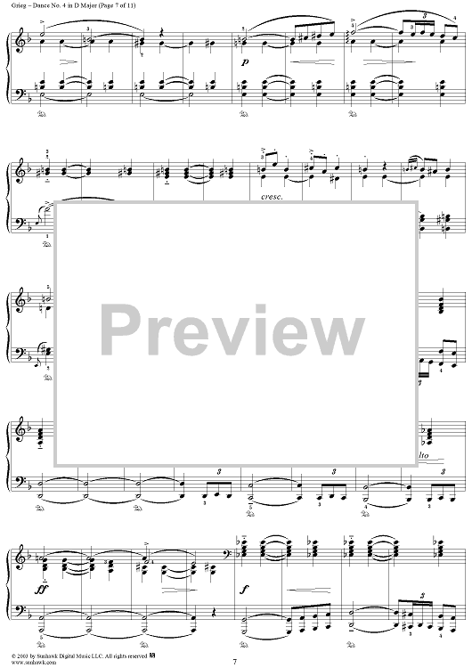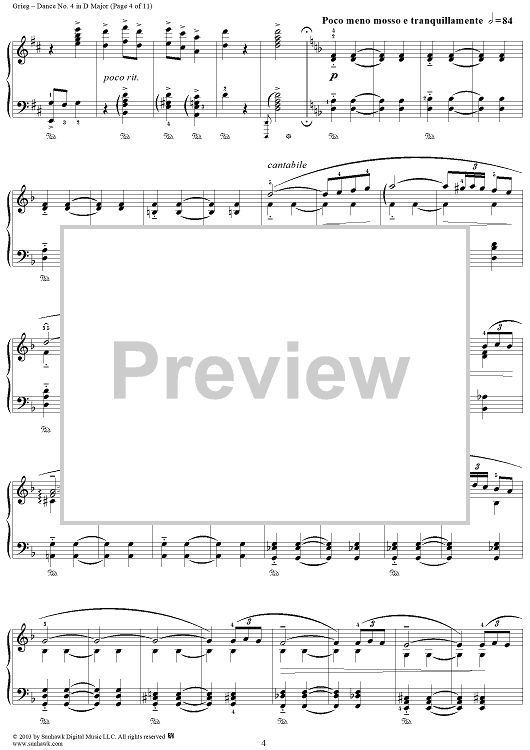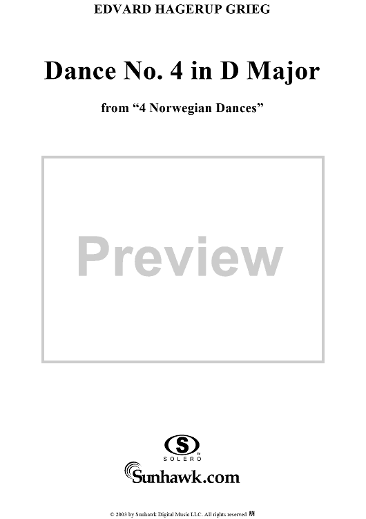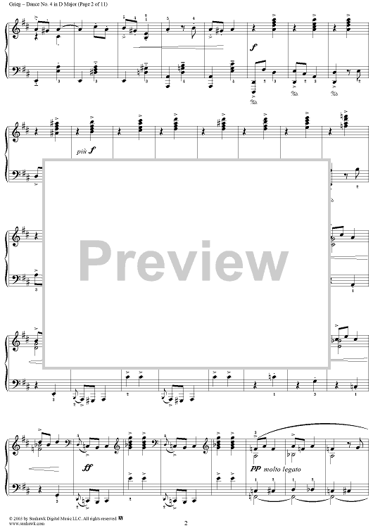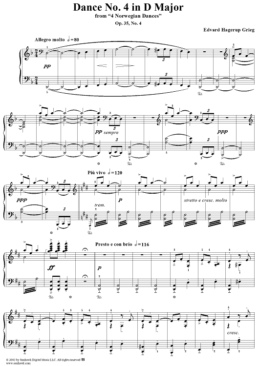 Digital Sheet Music for Dance No. 4 in D Major by Edvard Grieg scored for Piano Solo; id:292664