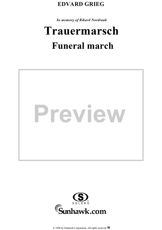 Digital Sheet Music for Funeral March in Memory of Rikard Nordraak by Edvard Grieg scored for Piano Solo; id:113183