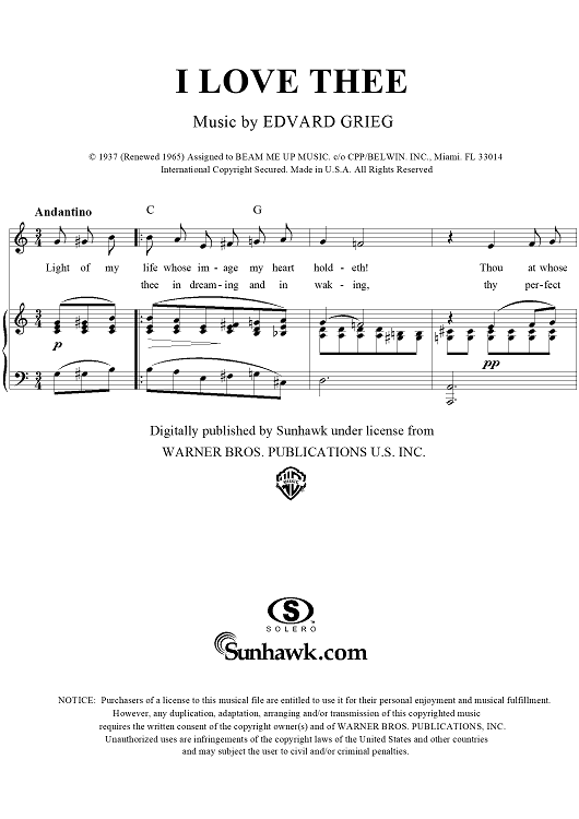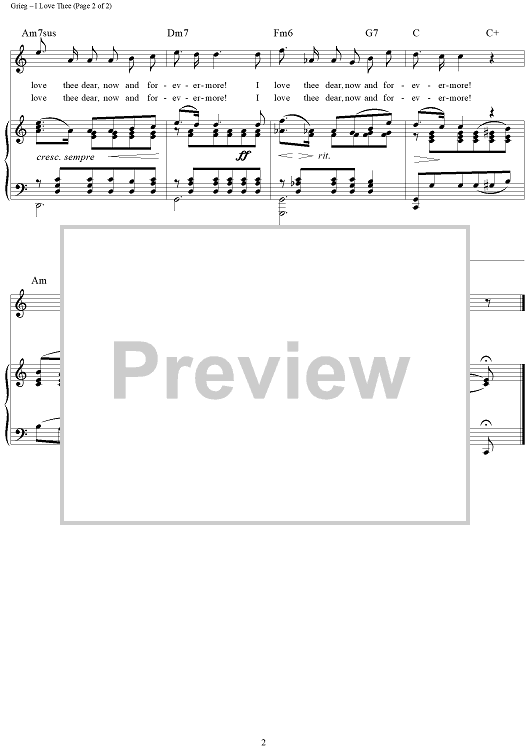 "I Love Thee" Sheet Music by Edvard Grieg