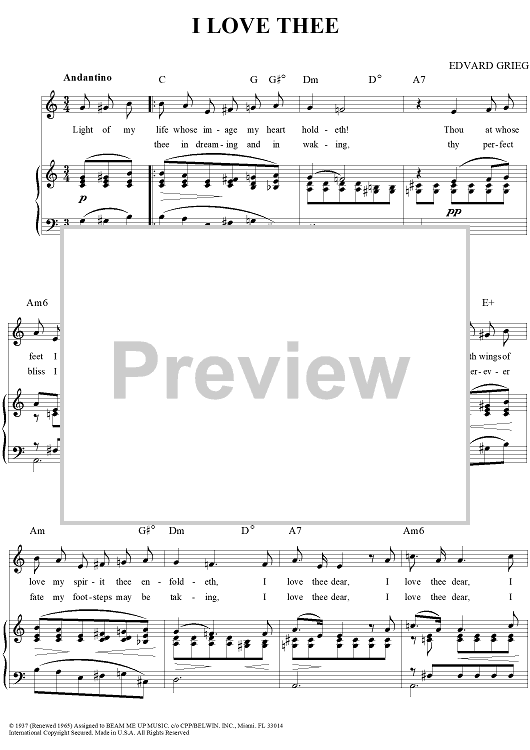 Digital Sheet Music for I Love Thee by Edvard Grieg scored for Piano/Vocal/Chords; id:267756