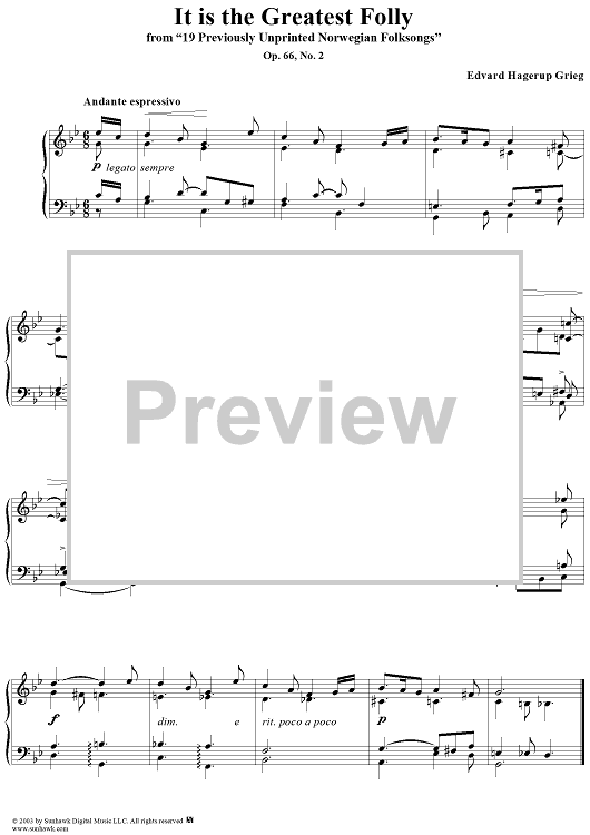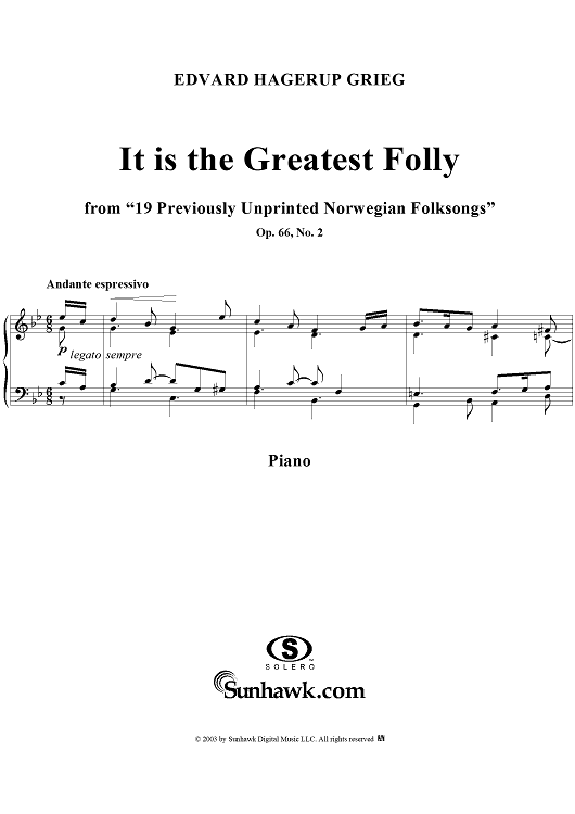 Digital Sheet Music for It is the Greatest Folly by Edvard Grieg scored for Piano Solo; id:268087