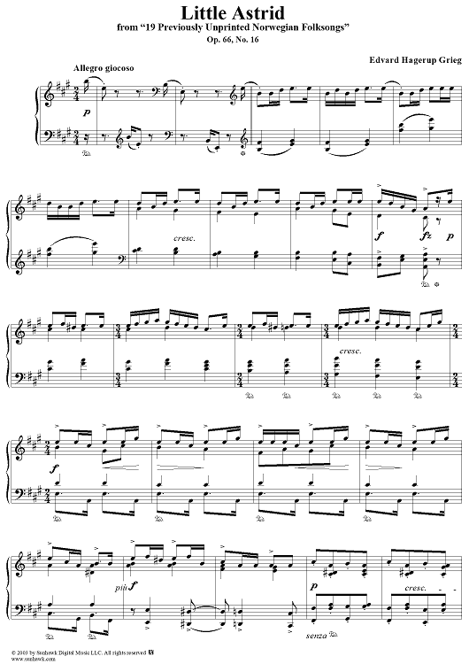 Digital Sheet Music for Little Astrid by Edvard Grieg scored for Piano Solo; id:267825