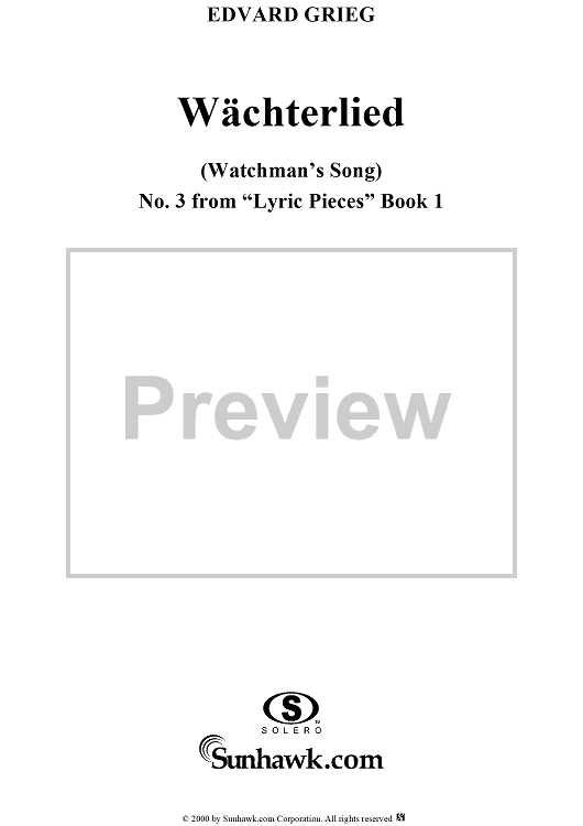 "Lyric Pieces (Book 1), no. 3: Wächterlied" Sheet Music by Edvard Grieg