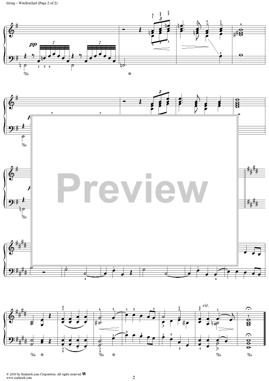 Digital Sheet Music for Lyric Pieces (Book 1), no. 3: Wächterlied by Edvard Grieg scored for Piano Solo; id:240841