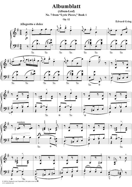 "Lyric Pieces (Book 1), no. 7: Albumblatt" Sheet Music by Edvard Grieg