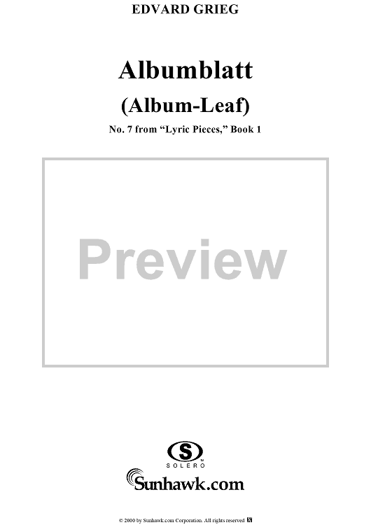 Digital Sheet Music for Lyric Pieces (Book 1), no. 7: Albumblatt by Edvard Grieg scored for Piano Solo; id:240844