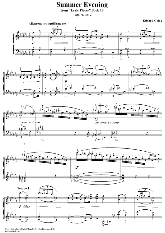 "Lyric Pieces Book 10, Op. 71, No. 2: Summer Evening" Sheet Music by Edvard Grieg